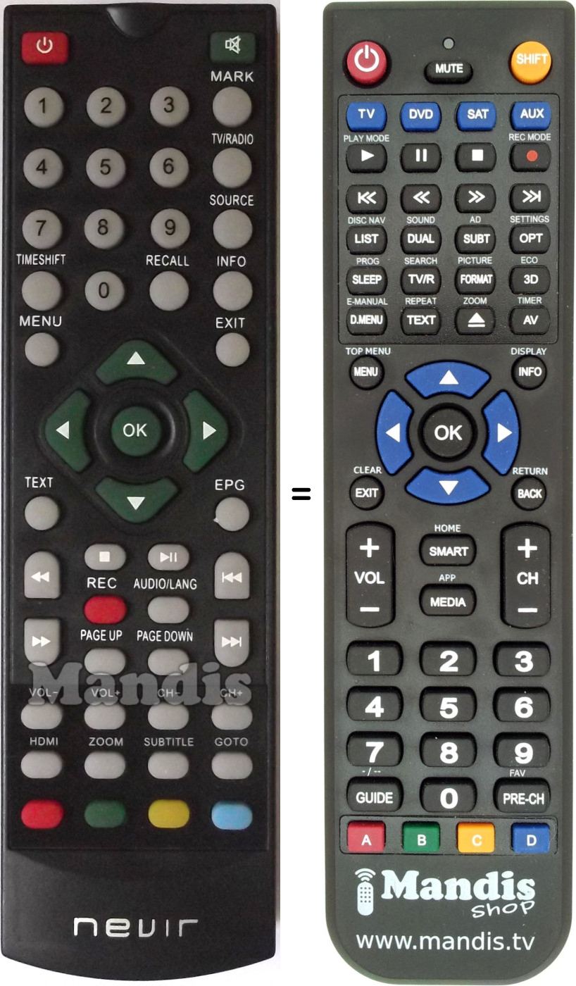 Diese Fernbedienung ersetzt Ihre Nevir003 in vollem Umfang und bietet alle Funktionen des Originals.