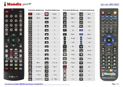 Ein Dokument ist enthalten, um die Verwendung der neuen Fernbedienung zu erleichtern, indem es die Tastenbelegung zeigt.