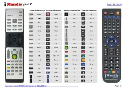 Home > Marken > Fernbedienungen Acer > Fernbedienung für Acer RC-803V > Interaktive Tastenbelegung Acer RC-803V