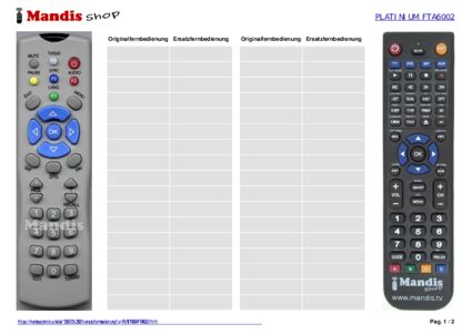 Ein Dokument ist enthalten, um die Verwendung der neuen Fernbedienung zu erleichtern, indem es die Tastenbelegung zeigt.