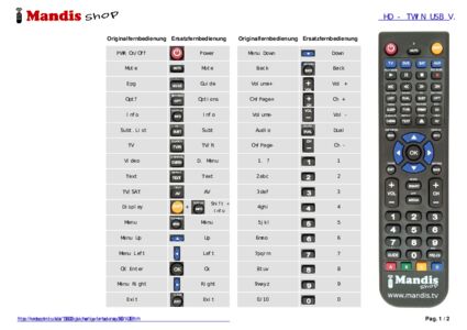 Ein Dokument ist enthalten, um die Verwendung der neuen Fernbedienung zu erleichtern, indem es die Tastenbelegung zeigt.