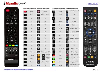 Diese Fernbedienung ersetzt die meisten Funktionen Ihres E3HD. Es ist keine Universalfernbedienung, sondern eine Kopie mit den meisten Tasten und Funktionen Ihres Originals.