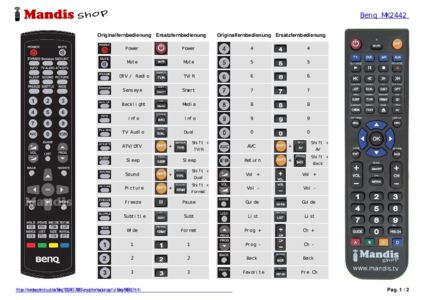 Ein Dokument ist enthalten, um die Verwendung der neuen Fernbedienung zu erleichtern, indem es die Tastenbelegung zeigt.