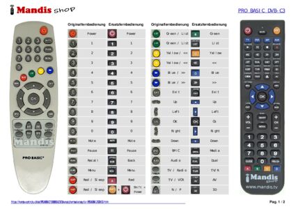 Ein Dokument ist enthalten, um die Verwendung der neuen Fernbedienung zu erleichtern, indem es die Tastenbelegung zeigt.