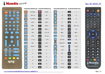 Home > Marken > Fernbedienungen Npg > Fernbedienung für Npg BS-N2020-DT > Interaktive Tastenbelegung Npg BS-N2020-DT