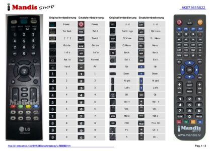 Ein Dokument ist enthalten, um die Verwendung der neuen Fernbedienung zu erleichtern, indem es die Tastenbelegung zeigt.