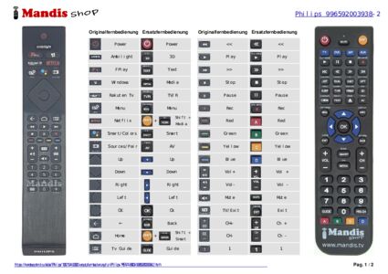 Home > Marken > Fernbedienungen Philips > Fernbedienung für Philips 996592003938-2 > Interaktive Tastenbelegung Philips 996592003938-2