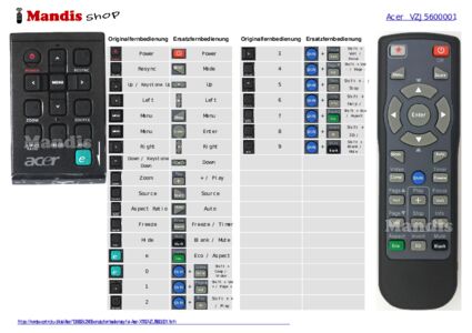 Home > Marken > Fernbedienungen Acer > Fernbedienung für Acer VZ.J5600.001 > Interaktive Tastenbelegung Acer VZ.J5600.001