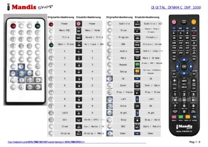 Ein Dokument ist enthalten, um die Verwendung der neuen Fernbedienung zu erleichtern, indem es die Tastenbelegung zeigt.
