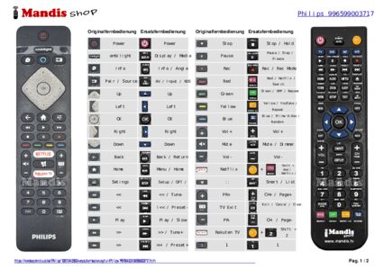 Home > Marken > Fernbedienungen Philips > Fernbedienung für Philips 996599003717 > Interaktive Tastenbelegung Philips 996599003717