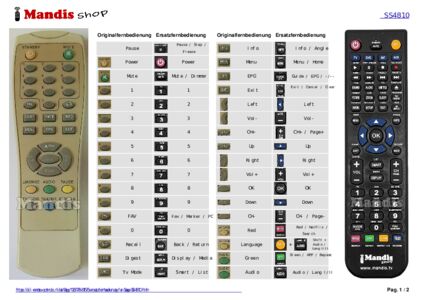 Ein Dokument ist enthalten, um die Verwendung der neuen Fernbedienung zu erleichtern, indem es die Tastenbelegung zeigt.
