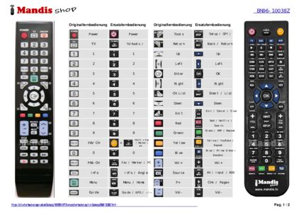 Ein Dokument ist enthalten, um die Verwendung der neuen Fernbedienung zu erleichtern, indem es die Tastenbelegung zeigt.