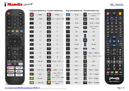 Ein Dokument ist enthalten, um die Verwendung der neuen Fernbedienung zu erleichtern, indem es die Tastenbelegung zeigt.