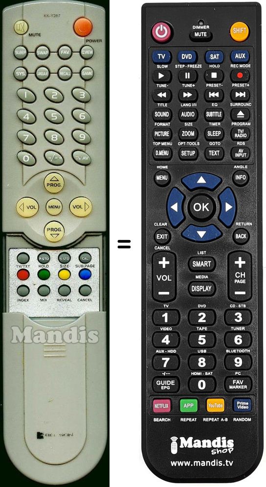 Die Fernbedienung ersetzt das Original KK-Y267 in der Gesamtheit seiner Funktionen.