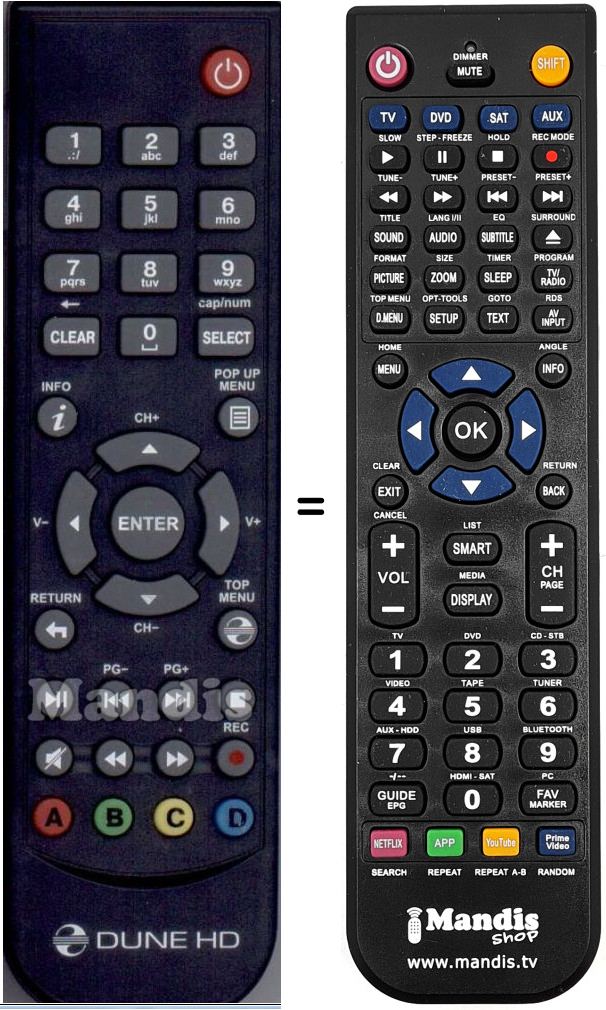 Es handelt sich jedoch nicht um eine Universalfernbedienung sondern um eine Fernbedienung die das Original ersetzt.