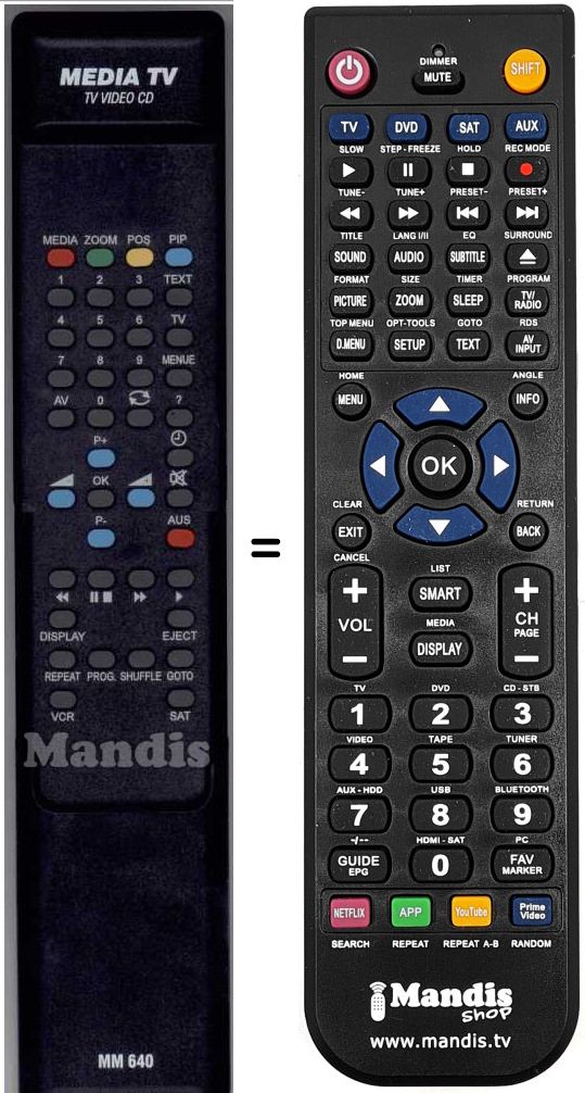 Es handelt sich jedoch nicht um eine Universalfernbedienung sondern um eine Fernbedienung die das Original ersetzt.