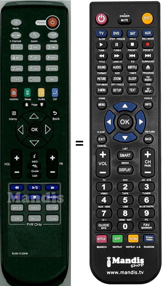Es handelt sich jedoch nicht um eine Universalfernbedienung sondern um eine Fernbedienung die das Original ersetzt.