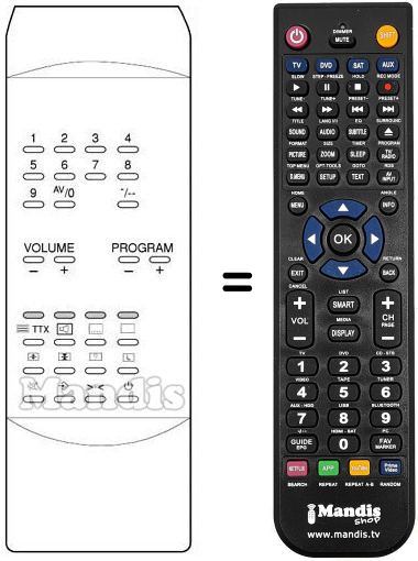 Fernbedienung, die das Original und die Gesamtheit seiner Funktionen, vollständig ersetzt. Es handelt sich jedoch nicht um eine Universalfernbedienung sondern um eine Fernbedienung die das Original ersetzt. Sie erhalten eine nach Einlegen der Batterien sofort einsatzbereite Fernbedienung. Jegliches Programmieren entfällt. Wir geben umfassende Garantie dafür, dass diese Fernbedienung alle Funktionen der Originalfernbedienung erfüllt.