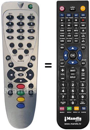 Fernbedienung, die das Original und die Gesamtheit seiner Funktionen, vollständig ersetzt.