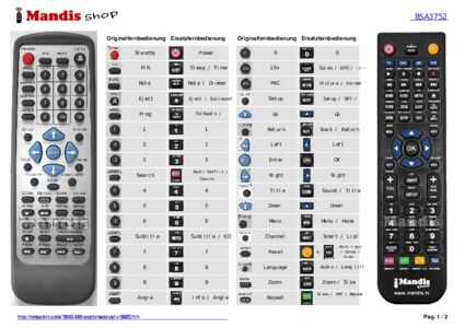 Ein Dokument ist enthalten, um die Verwendung der neuen Fernbedienung zu erleichtern, indem es die Tastenbelegung zeigt.