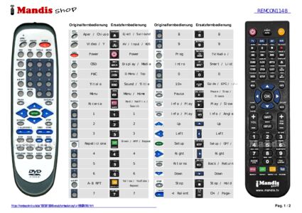 Ein Dokument ist enthalten, um die Verwendung der neuen Fernbedienung zu erleichtern, indem es die Tastenbelegung zeigt.