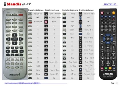 Ein Dokument ist enthalten, um die Verwendung der neuen Fernbedienung zu erleichtern, indem es die Tastenbelegung zeigt.