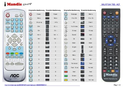 Diese Fernbedienung ersetzt Ihre 98LR7SW in vollem Umfang und bietet alle Funktionen des Originals.