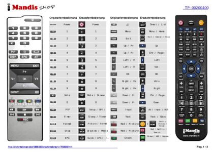 Ein Dokument ist enthalten, um die Verwendung der neuen Fernbedienung zu erleichtern, indem es die Tastenbelegung zeigt.
