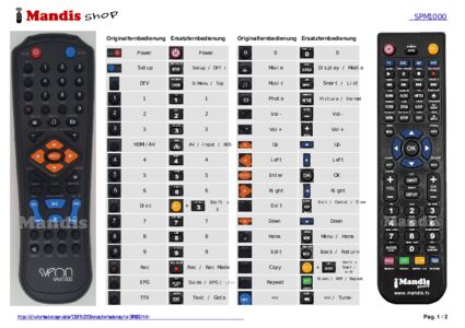 Ein Dokument ist enthalten, um die Verwendung der neuen Fernbedienung zu erleichtern, indem es die Tastenbelegung zeigt.