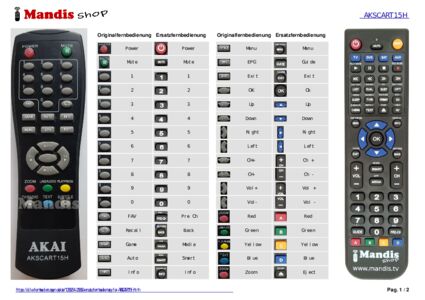 Diese Fernbedienung ersetzt Ihre AKSCART15H in vollem Umfang und bietet alle Funktionen des Originals.