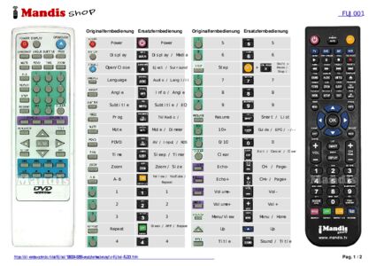 Ein Dokument ist enthalten, um die Verwendung der neuen Fernbedienung zu erleichtern, indem es die Tastenbelegung zeigt.