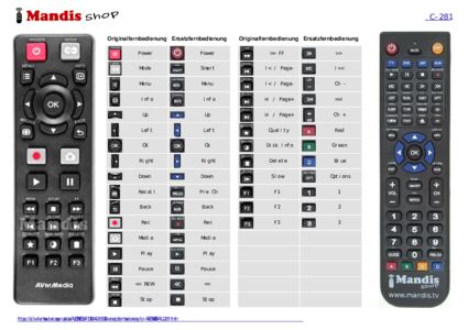 Diese Fernbedienung ersetzt Ihre C-281 in vollem Umfang und bietet alle Funktionen des Originals.