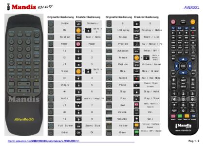 Ein Dokument ist enthalten, um die Verwendung der neuen Fernbedienung zu erleichtern, indem es die Tastenbelegung zeigt.