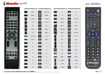 Home > Marken > Fernbedienungen Acer > Fernbedienung für Acer REMCON332
