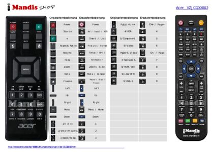 Home > Marken > Fernbedienungen Acer > Fernbedienung für Acer VZJCQ00002