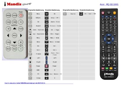 Ein Dokument ist enthalten, um die Verwendung der neuen Fernbedienung zu erleichtern, indem es die Tastenbelegung zeigt.