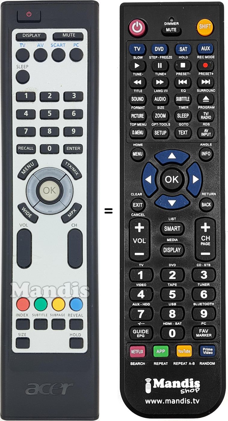 Es handelt sich jedoch nicht um eine Universalfernbedienung sondern um eine Fernbedienung die das Original ersetzt.