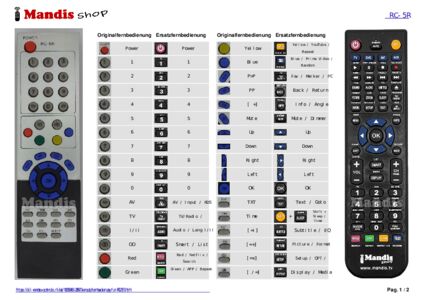 Ein Dokument ist enthalten, um die Verwendung der neuen Fernbedienung zu erleichtern, indem es die Tastenbelegung zeigt.