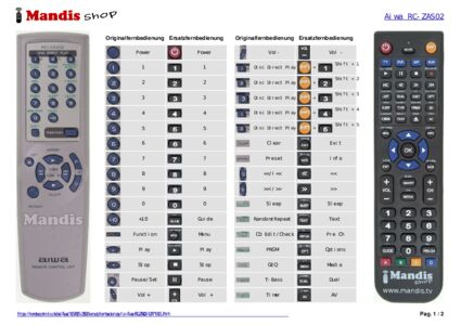 Ein Dokument ist enthalten, um die Verwendung der neuen Fernbedienung zu erleichtern, indem es die Tastenbelegung zeigt.