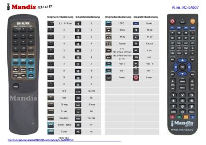 Diese Fernbedienung ersetzt Ihre RC-6AS07 in vollem Umfang und bietet alle Funktionen des Originals.