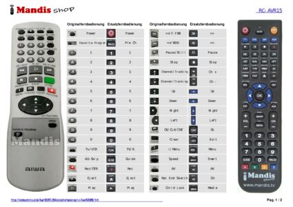 Ein Dokument ist enthalten, um die Verwendung der neuen Fernbedienung zu erleichtern, indem es die Tastenbelegung zeigt.