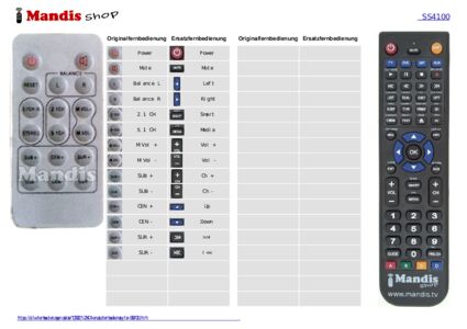 Diese Fernbedienung ersetzt die meisten Funktionen Ihres SS4100. Es ist keine Universalfernbedienung, sondern eine Kopie mit den meisten Tasten und Funktionen Ihres Originals.