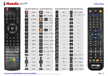 Ein Dokument ist enthalten, um die Verwendung der neuen Fernbedienung zu erleichtern, indem es die Tastenbelegung zeigt.