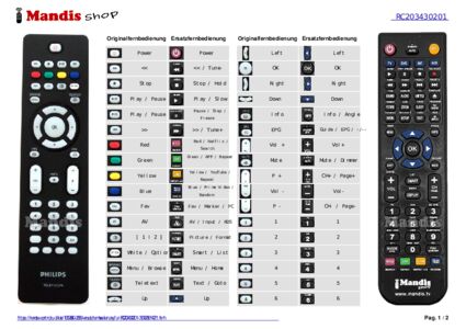 Ein Dokument ist enthalten, um die Verwendung der neuen Fernbedienung zu erleichtern, indem es die Tastenbelegung zeigt.