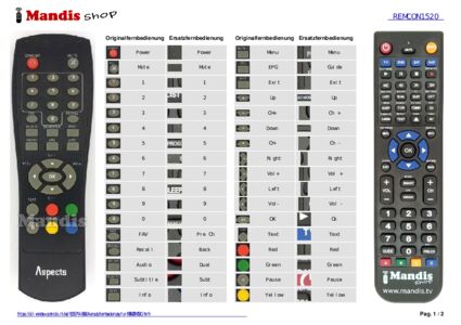 Ein Dokument ist enthalten, um die Verwendung der neuen Fernbedienung zu erleichtern, indem es die Tastenbelegung zeigt.