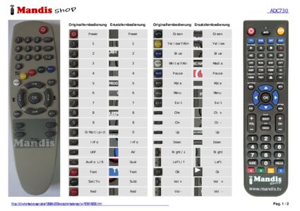 Diese Fernbedienung ersetzt Ihre RT7367 (ADC730) in vollem Umfang und bietet alle Funktionen des Originals.