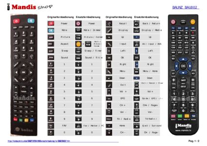 Ein Dokument ist enthalten, um die Verwendung der neuen Fernbedienung zu erleichtern, indem es die Tastenbelegung zeigt.