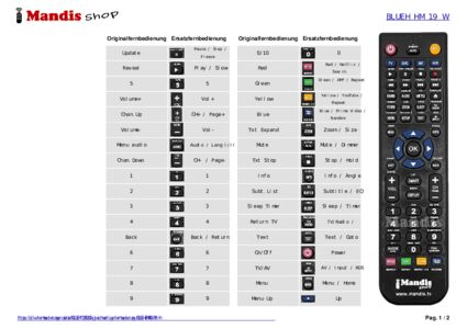 Ein Dokument ist enthalten, um die Verwendung der neuen Fernbedienung zu erleichtern, indem es die Tastenbelegung zeigt.