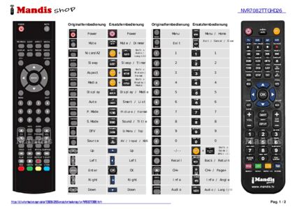 Ein Dokument ist enthalten, um die Verwendung der neuen Fernbedienung zu erleichtern, indem es die Tastenbelegung zeigt.