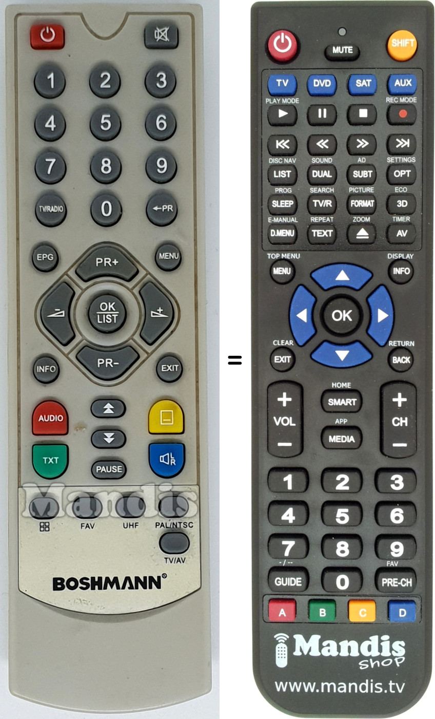 Diese Fernbedienung ersetzt Ihre Boshmann001 in vollem Umfang und bietet alle Funktionen des Originals.